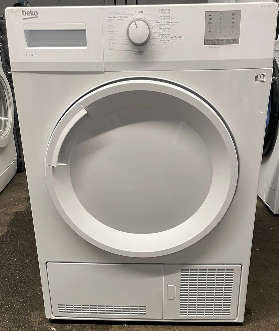 Digitale indicator resterende tijd JaGeluidssignaal einde wasbeurt NeeKinderslotNeeTumbler heeft verlichting NeeSlimme functieGeen slimme functiesBediening via mobiele app NeeSmart Home PlatformGeen platformAantal instellingen15Programma’s voor delicate stoffenJaType droogprogrammaJeans | Katoen | Koud | KreukherstellendIndicatielampjeNeeFysieke kenmerken