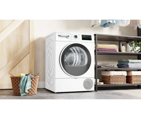 Met de Bosch WTH8520SNL warmtepompdroger bespaart u energie ten opzichte van een normale droger. Dit is niet alleen goed voor het milieu, maar ook voor uw portemonnee. Daarnaast kan – door de lage aansluitwaarde – een warmtepompdroger tegelijkertijd met de wasmachine op dezelfde groep draaien.