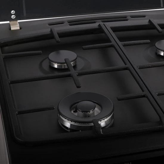 De pandragers van gietijzer geven deze inbouw gaskookplaat een robuuste uitstraling. Omdat de gietijzeren pandrager vrij zwaar is verschuift deze niet tijdens het koken. Daarnaast zorgt het ruwe oppervlak ervoor dat de pannen extra stevig staan.