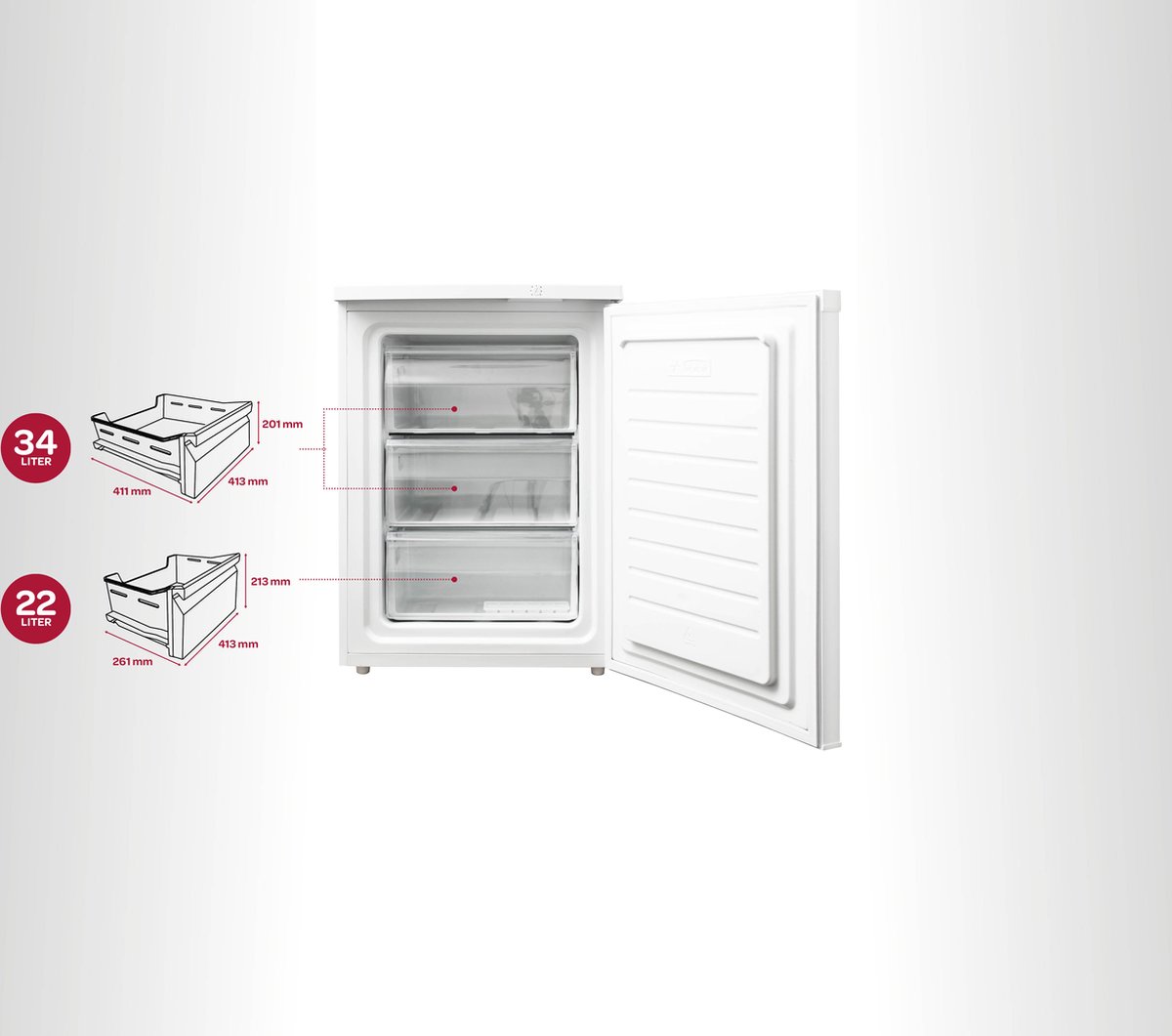 Fitelli VR912ZW – Vriezer Tafelmodel – 4 Vrieslades – 91 Liter – 55cm breed- Zwart