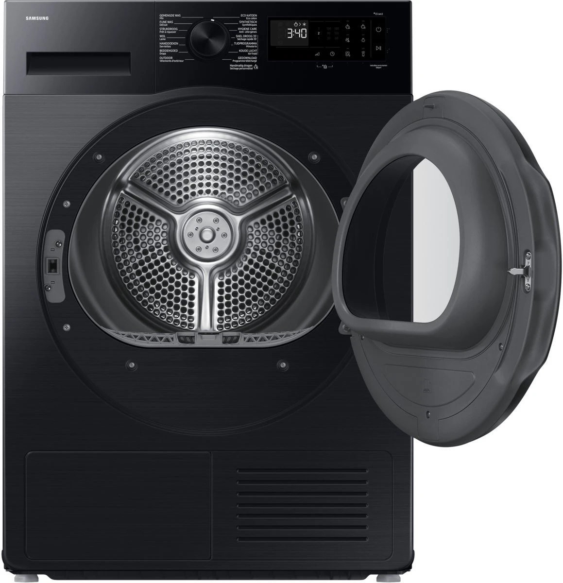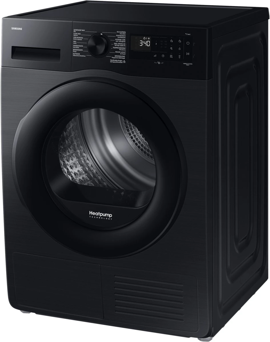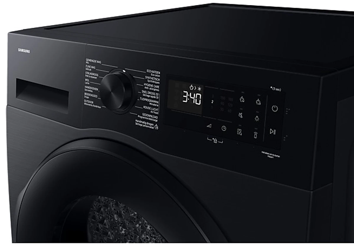 Ontdek de Samsung DV9UDG52A0ABEN, een geavanceerde en energiezuinige warmtepompdroger met een capaciteit van 9 kg. Deze stijlvolle zwarte droger uit de 5000-serie combineert innovatieve technologieën met uitzonderlijk gebruiksgemak.